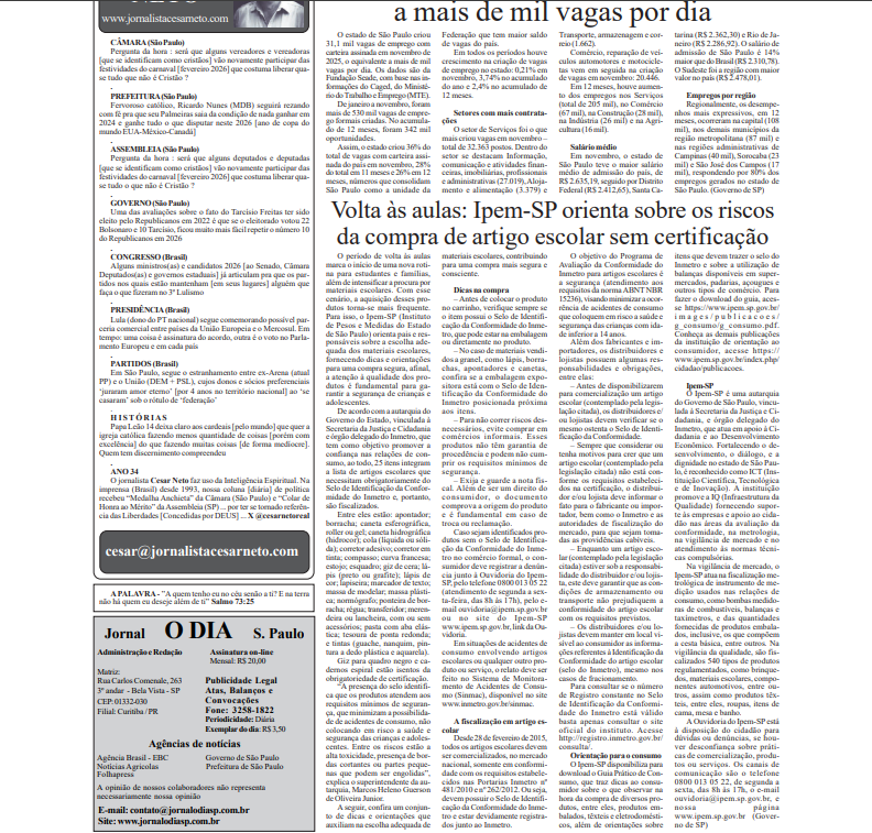 Estúdio CBN Fronteira - 07/01/2026 (cita o Ipem-SP)
