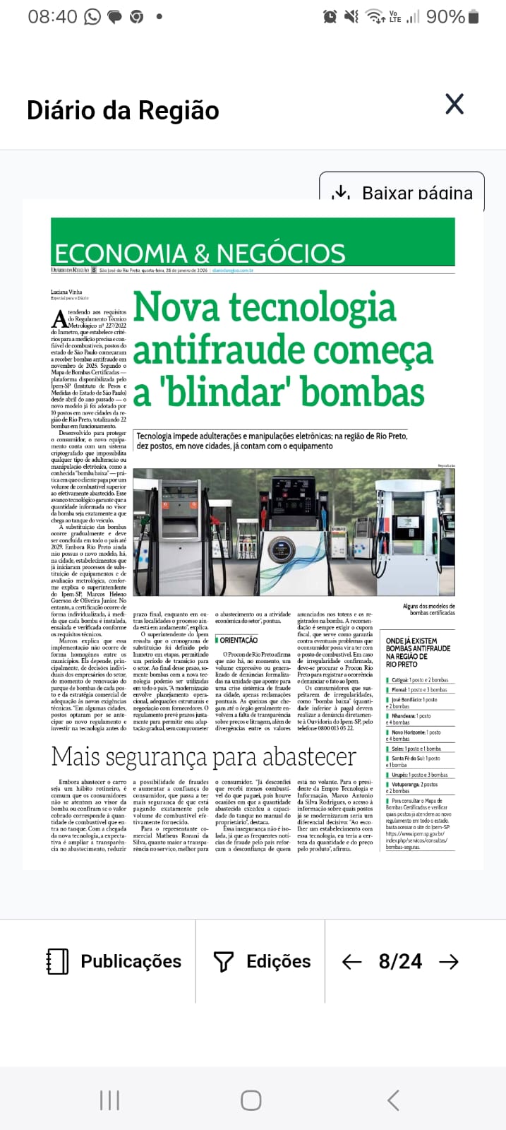 Nova tecnologia antifraude começa a 'blindar' bombas de combustíveis na região de Rio Preto (cita o Ipem-SP)
